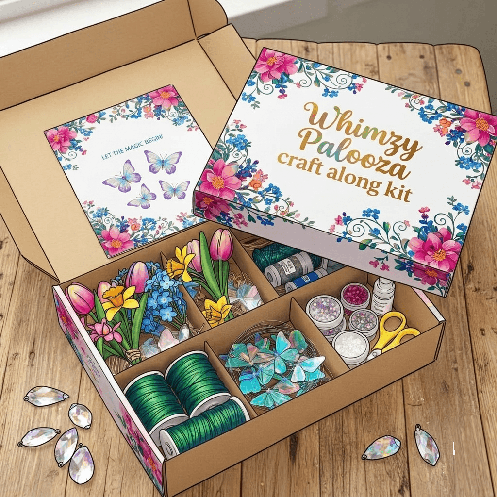 Each kit is lovingly curated by our Whimzy & Wonder coaches and packed with surprise, high-quality supplies designed to coordinate perfectly with our palooza-themed tutorials. Craft along in real time with easeâno shopping, no guessing, just pure creative freedom delivered right to your door.
